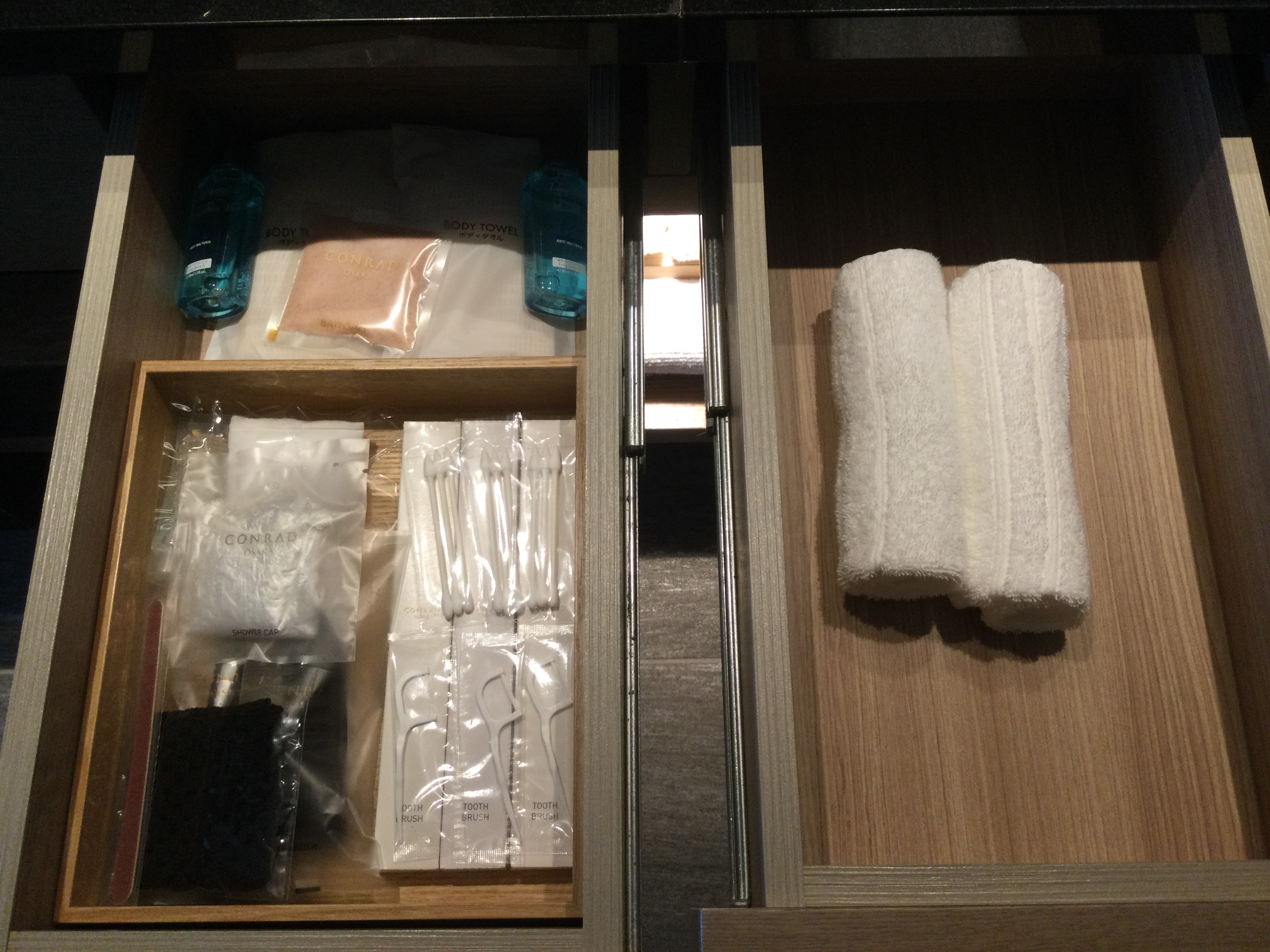 洗面エリアも十分すぎる広さがあり、洗面台は2つありとても使いやすかったです。アメニティも引き出しにぎっしり入っています。