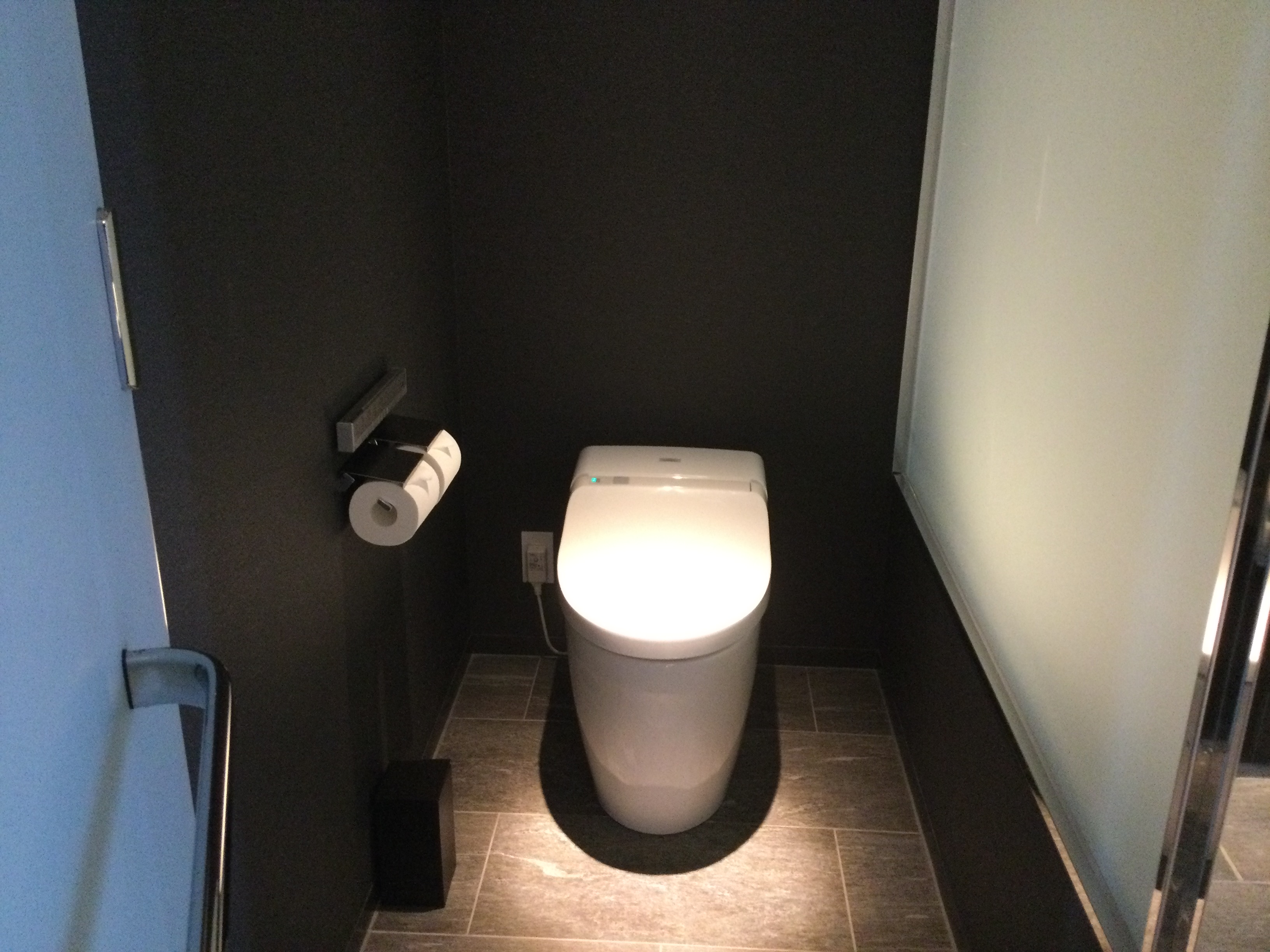 トイレはバスルームのすぐ横にありますが、すりガラスで中が見えないように配慮されています。