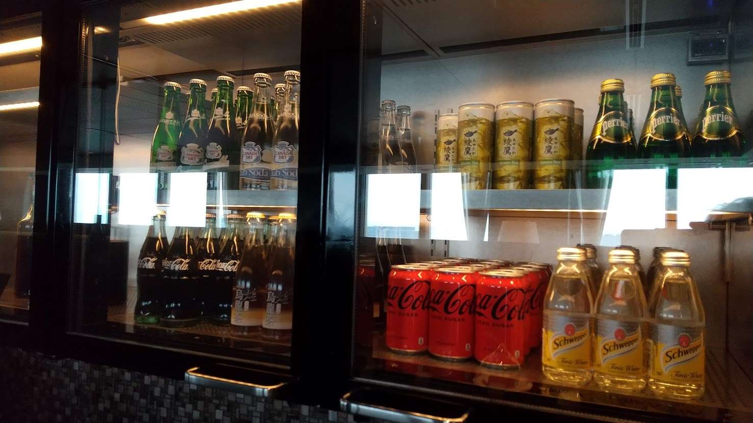冷蔵庫の中にあるソフトドリンクはミネラルウォーター、炭酸水、ジンシャーエール、コーラー、烏龍茶、日本茶、オレンジジュース、グレープジュースなど。