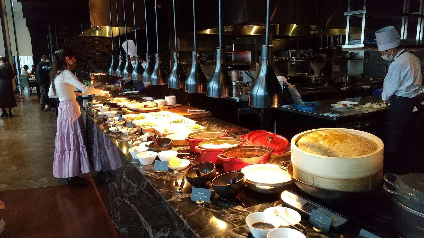 オープンキッチンで作られたブッフェ料理は和食も洋食も種類が豊富でどれも美味しいもばかりです。何を食べるか迷ってしまいます。